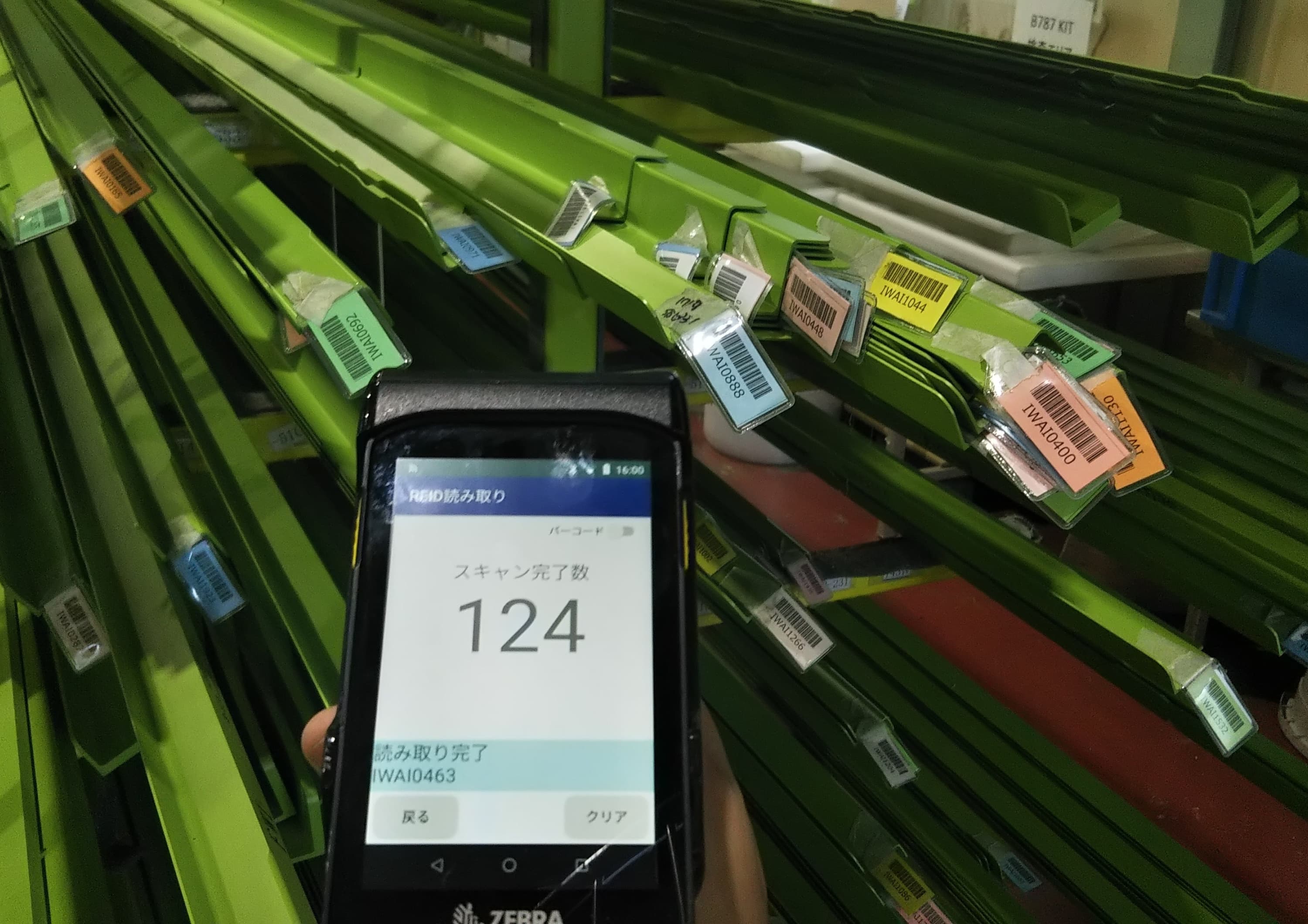 ■主な機能 入庫管理 ハンディーターミナルを用いて部品の発送指示書と部品に 貼り付けたタグを関連つけて入庫管理を行います。 出庫管理 オーダーのQRコードを基に構成品情報とタグの情報を突き 合わせることで誤った使用や数量不足を防止し、KITに使用 したタグとオーダーを関連つけてトレーサビリティと出庫 管理を行います。 在庫管理 RFIDタグを部品に貼り付けることにより、短時間で棚卸を実施します。 |